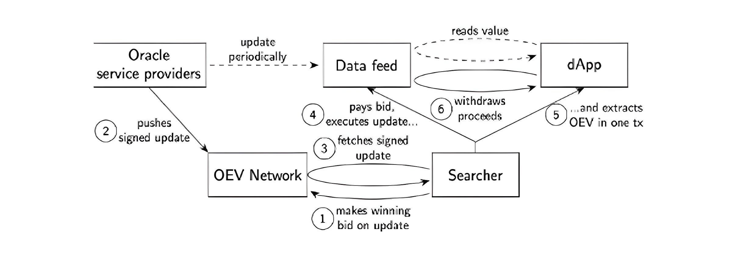 OEV solutions share the same basic idea - shifting the value extraction from oracle updates to the oracle layer, by coupling the price feed update with backrun searcher transactions.